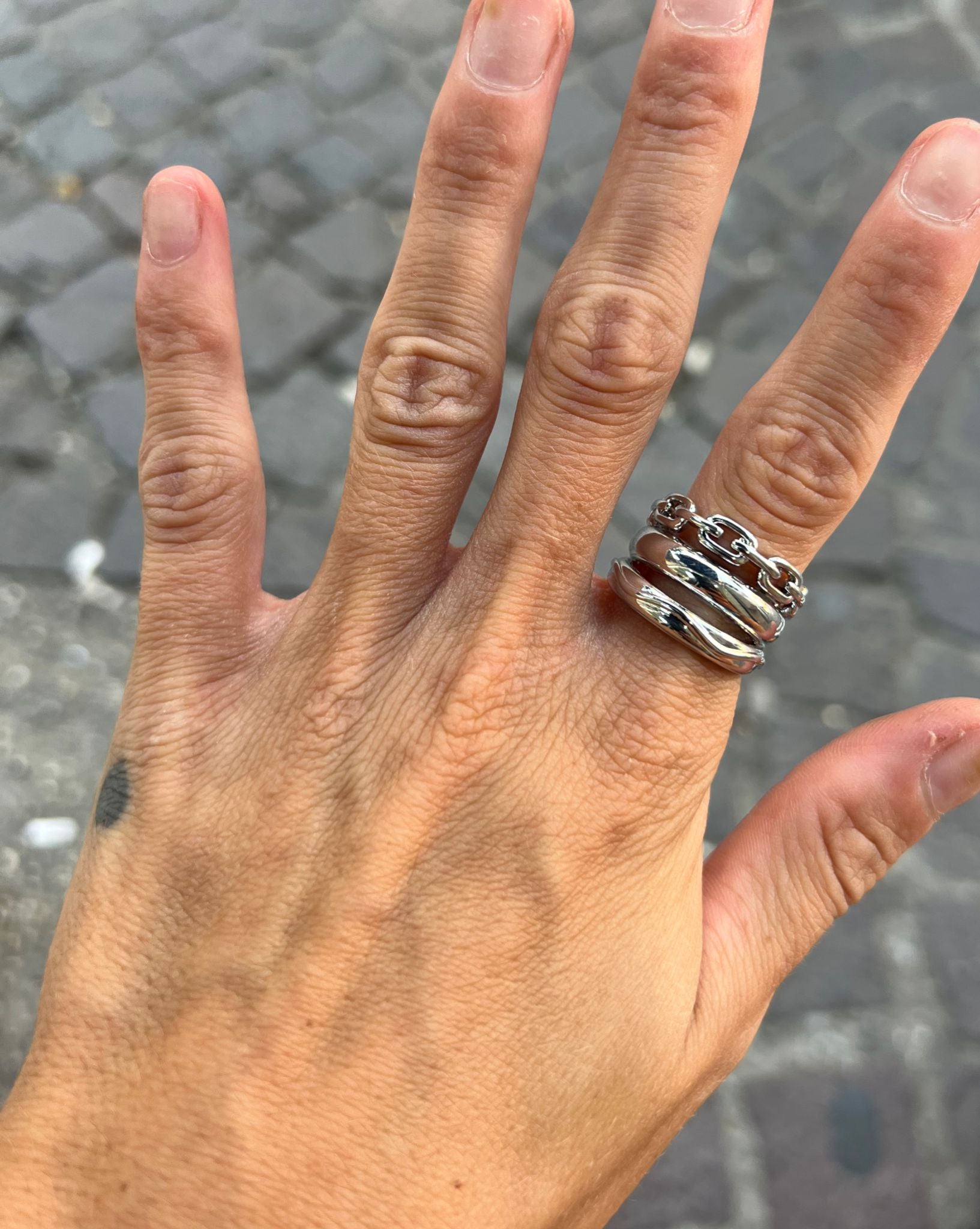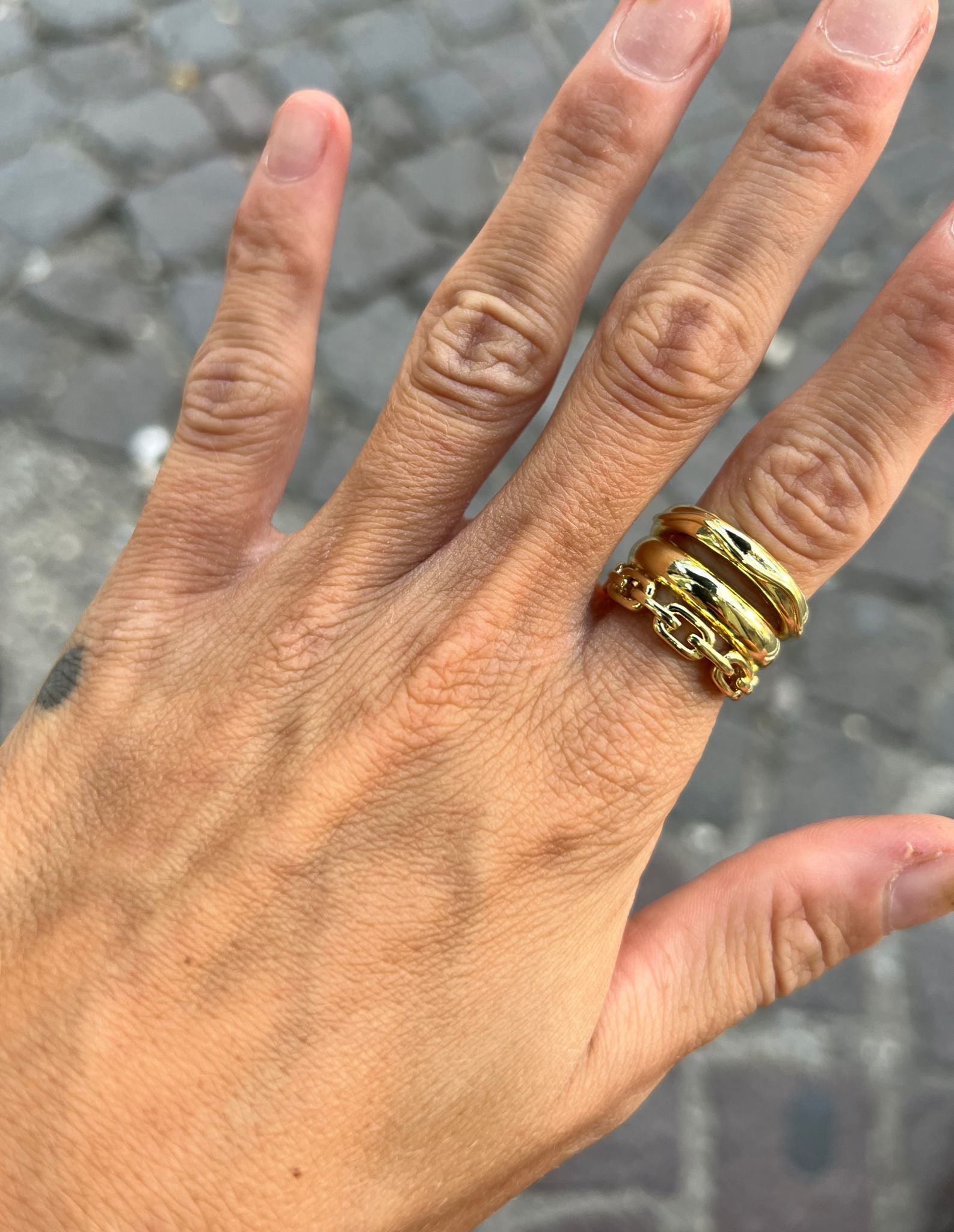 ANELLO IN ACCIAIO GALVANIZZATO IN ORO E ARGENTO