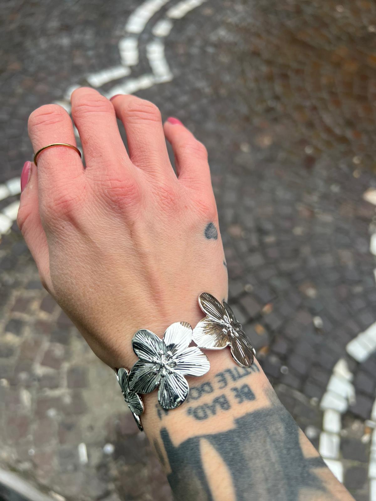 BRACCIALE RIGIDO IN ACCIAIO GALVANIZZATO IN ORO E ARGENTO