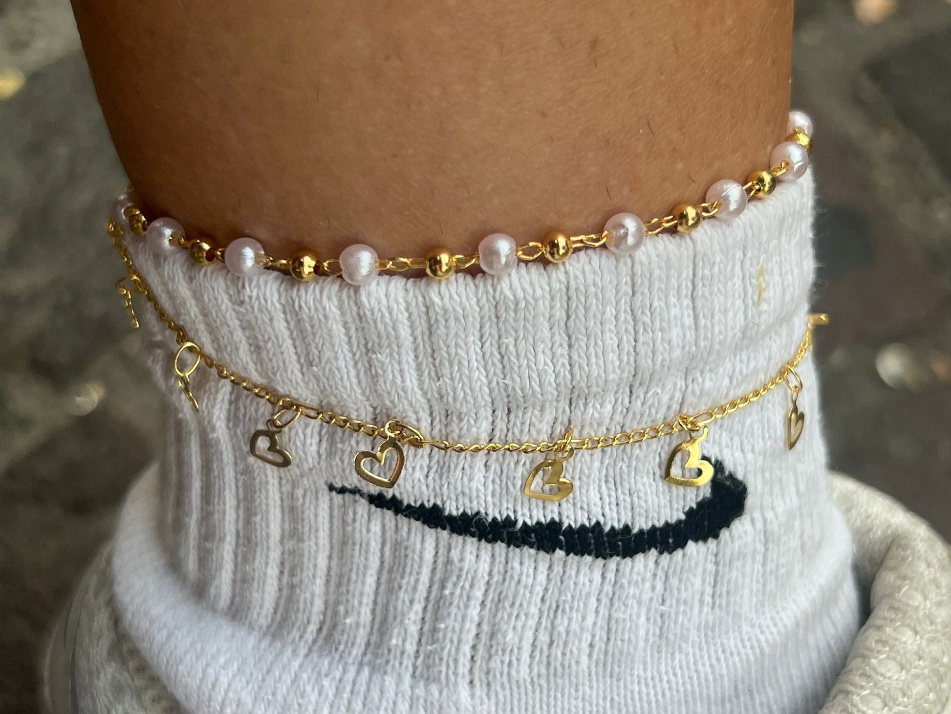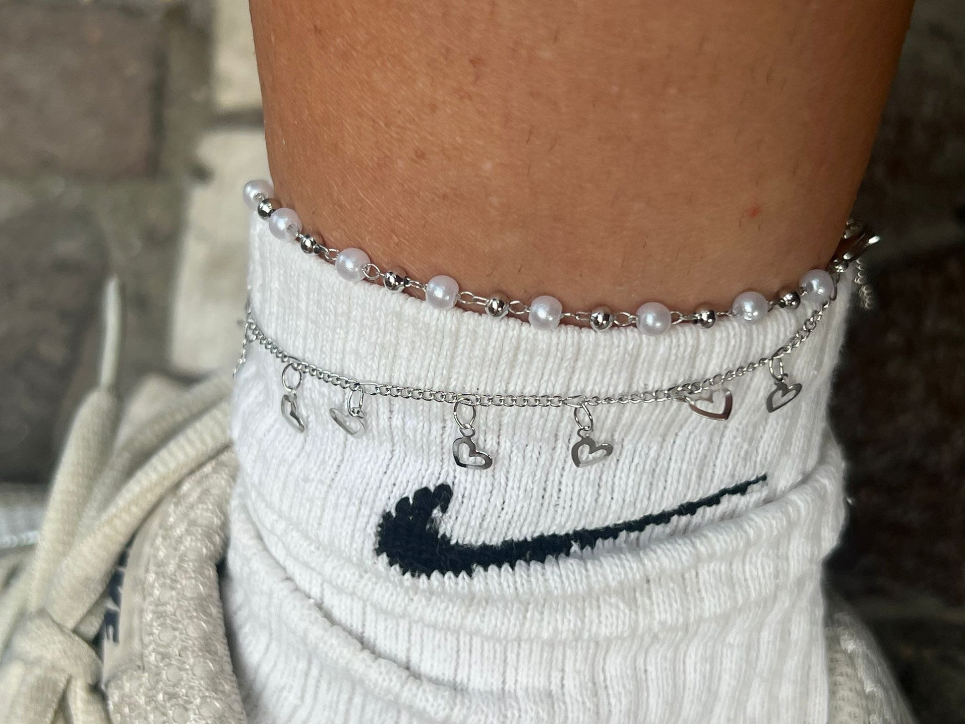 CAVIGLIERA IN ACCIAIO CON PERLINE E PENDENTI
