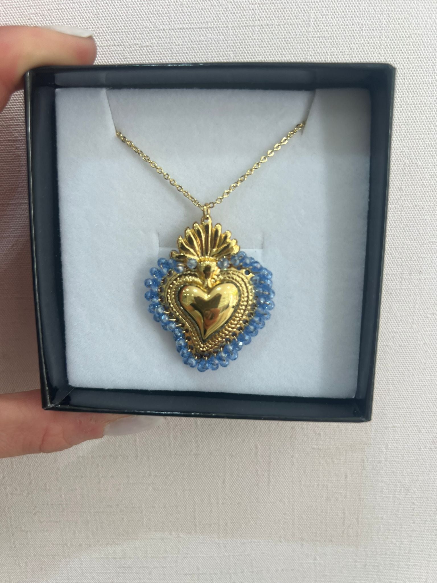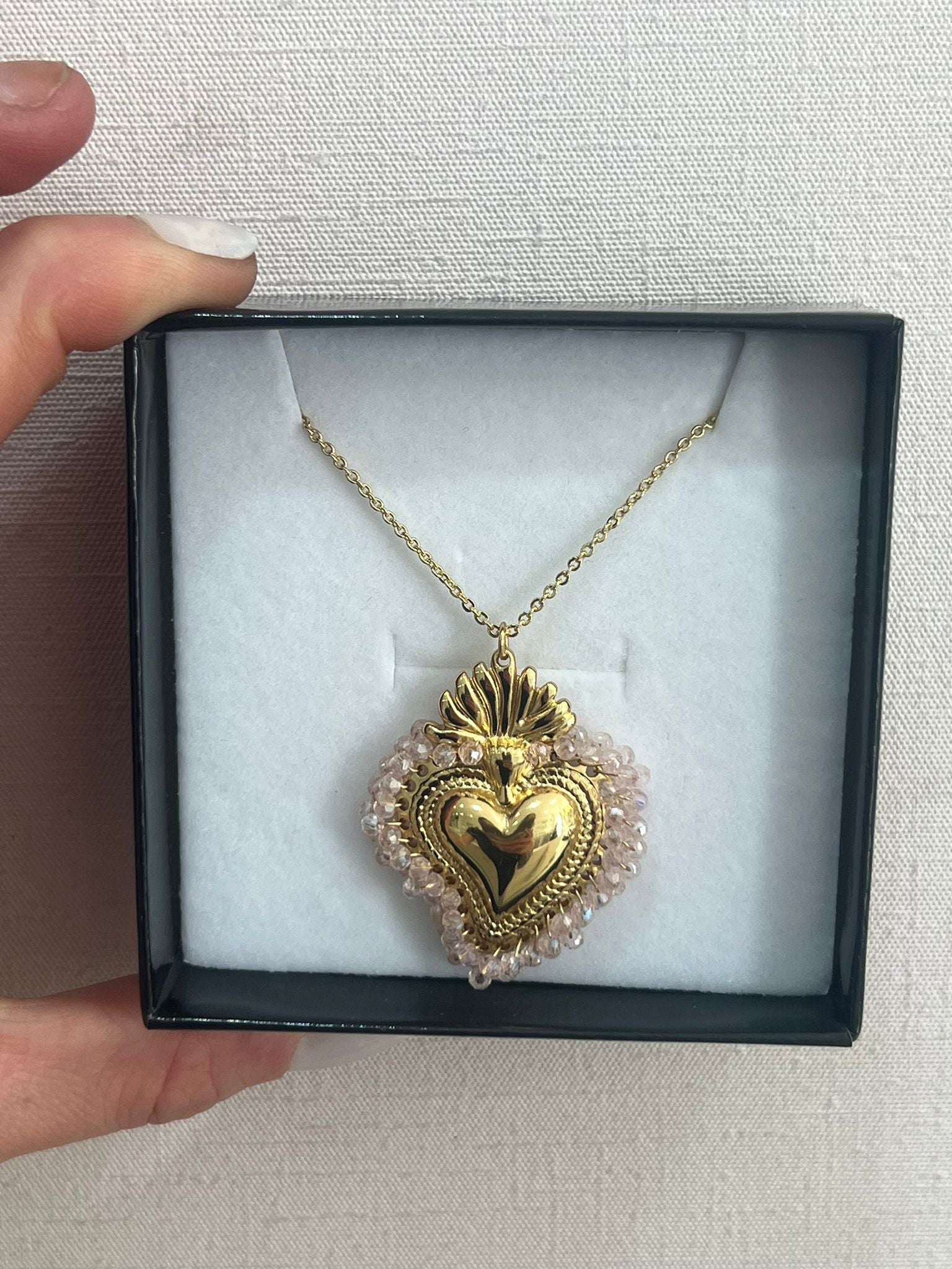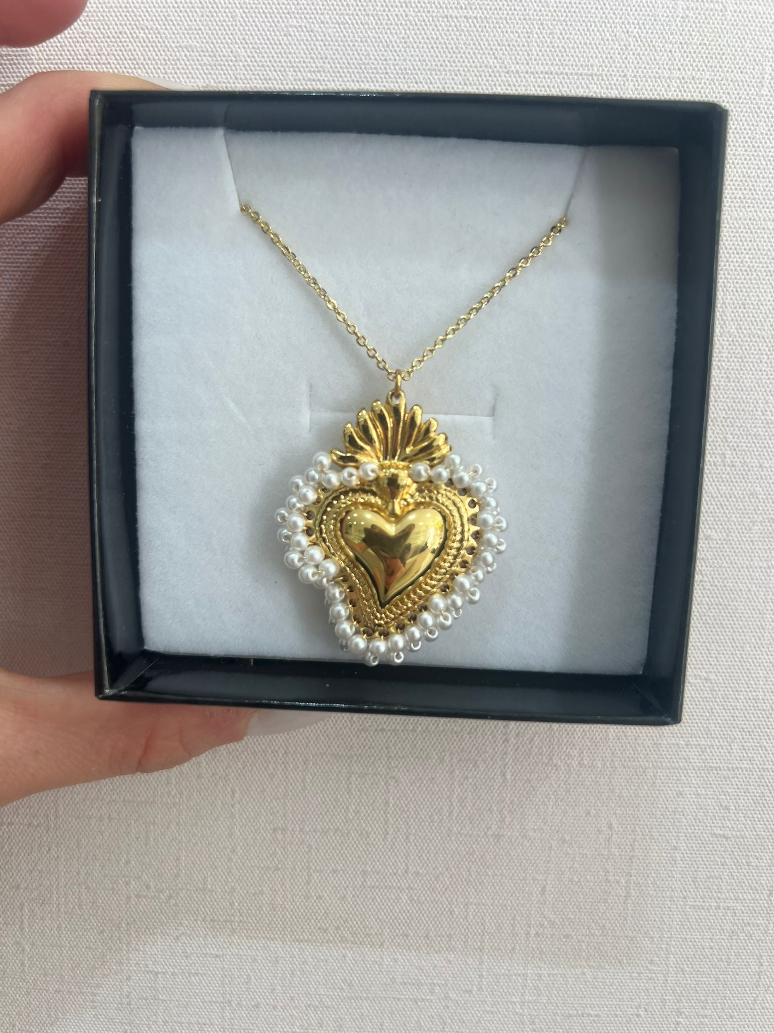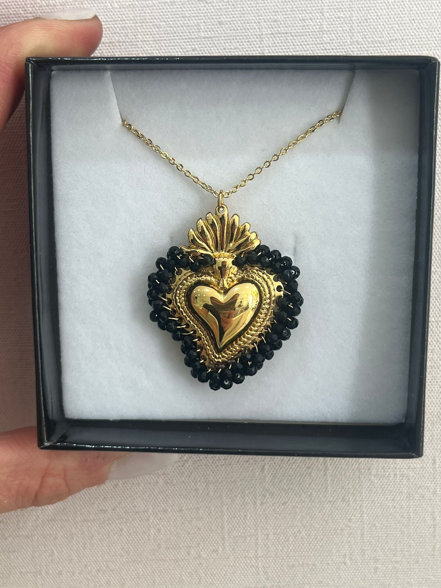 COLLANA IN ACCIAIO CON CUORE SACRO GALVANIZZATA IN ORO
