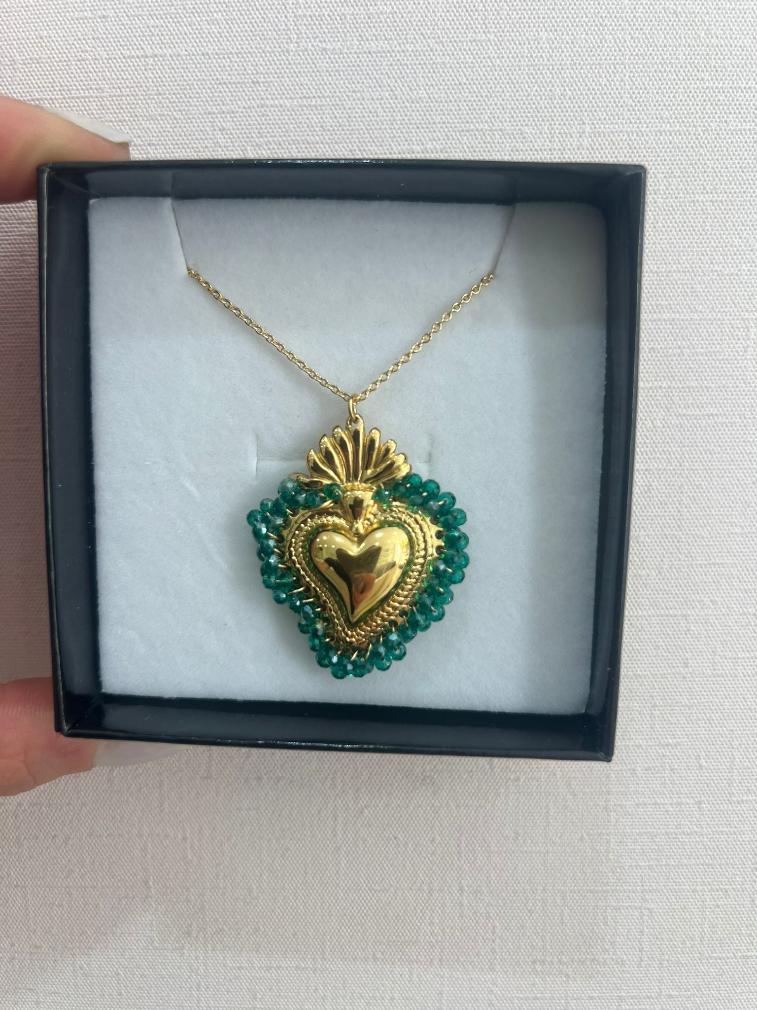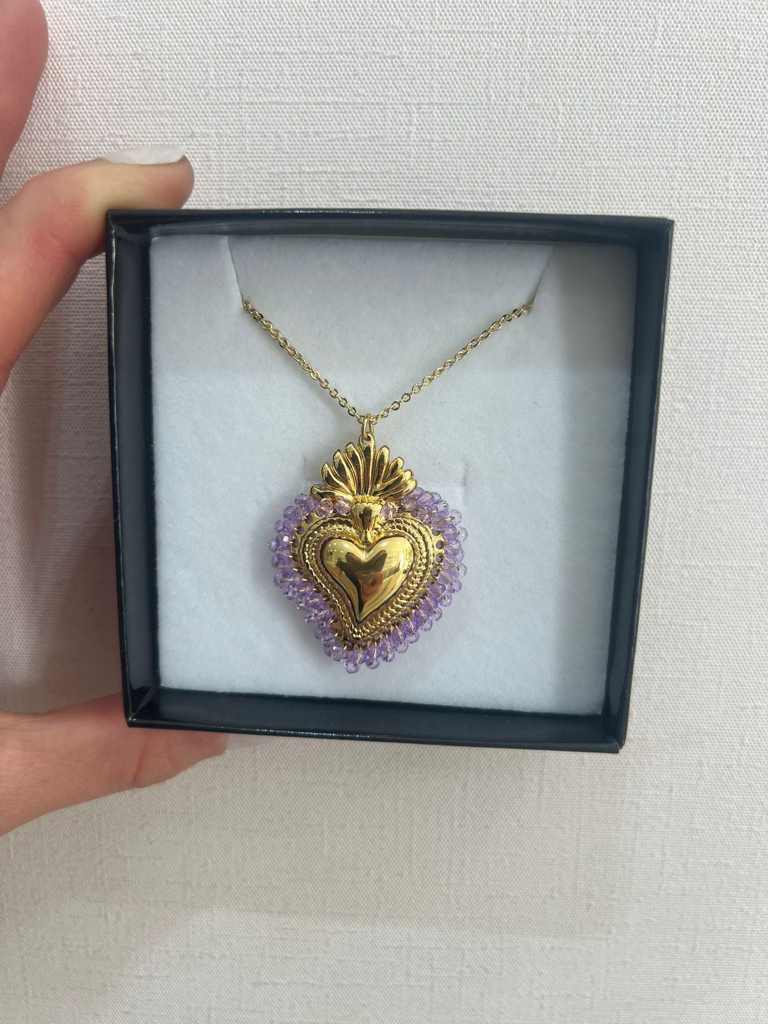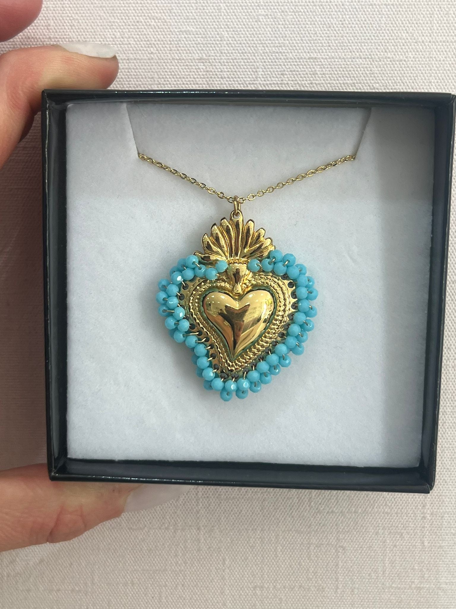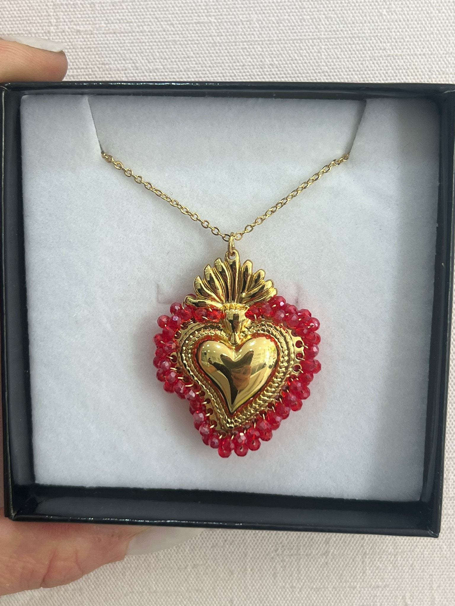 COLLANA IN ACCIAIO CON CUORE SACRO GALVANIZZATA IN ORO