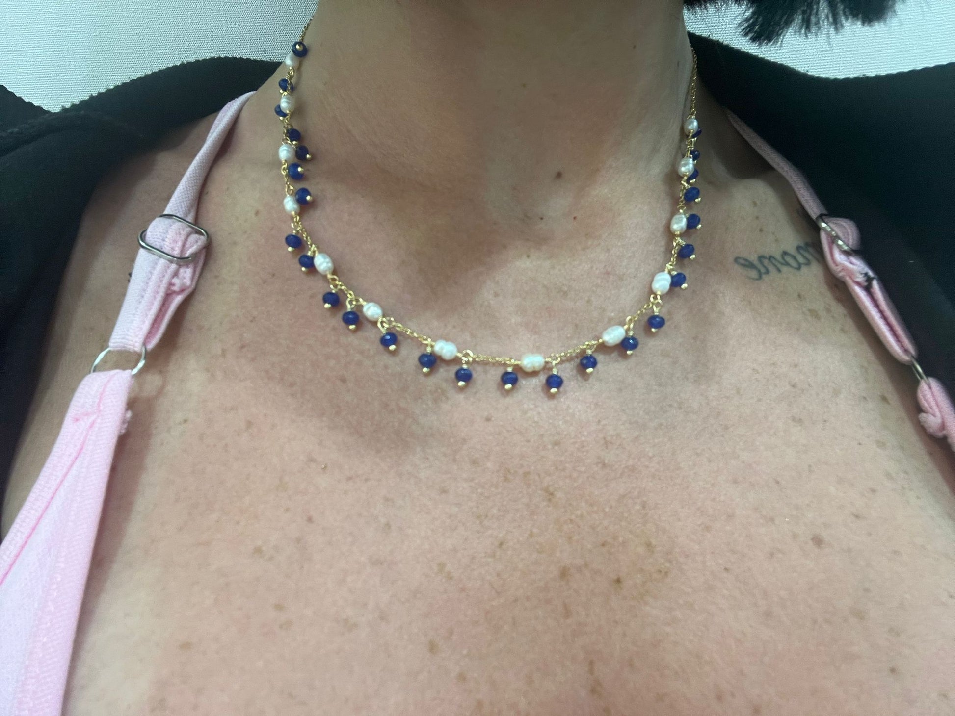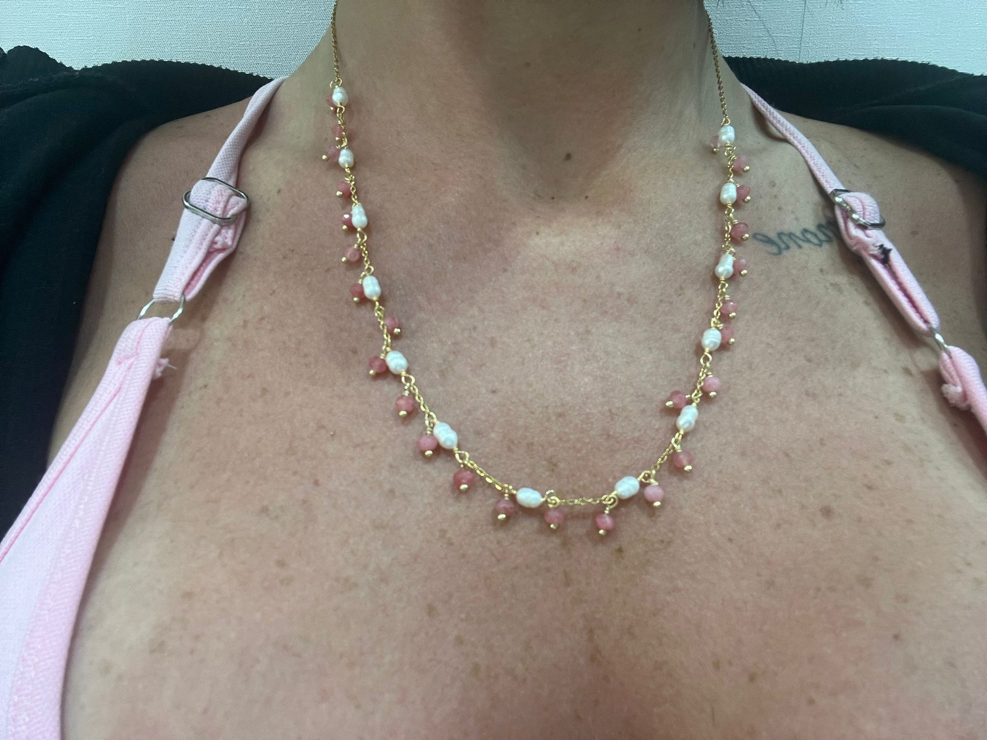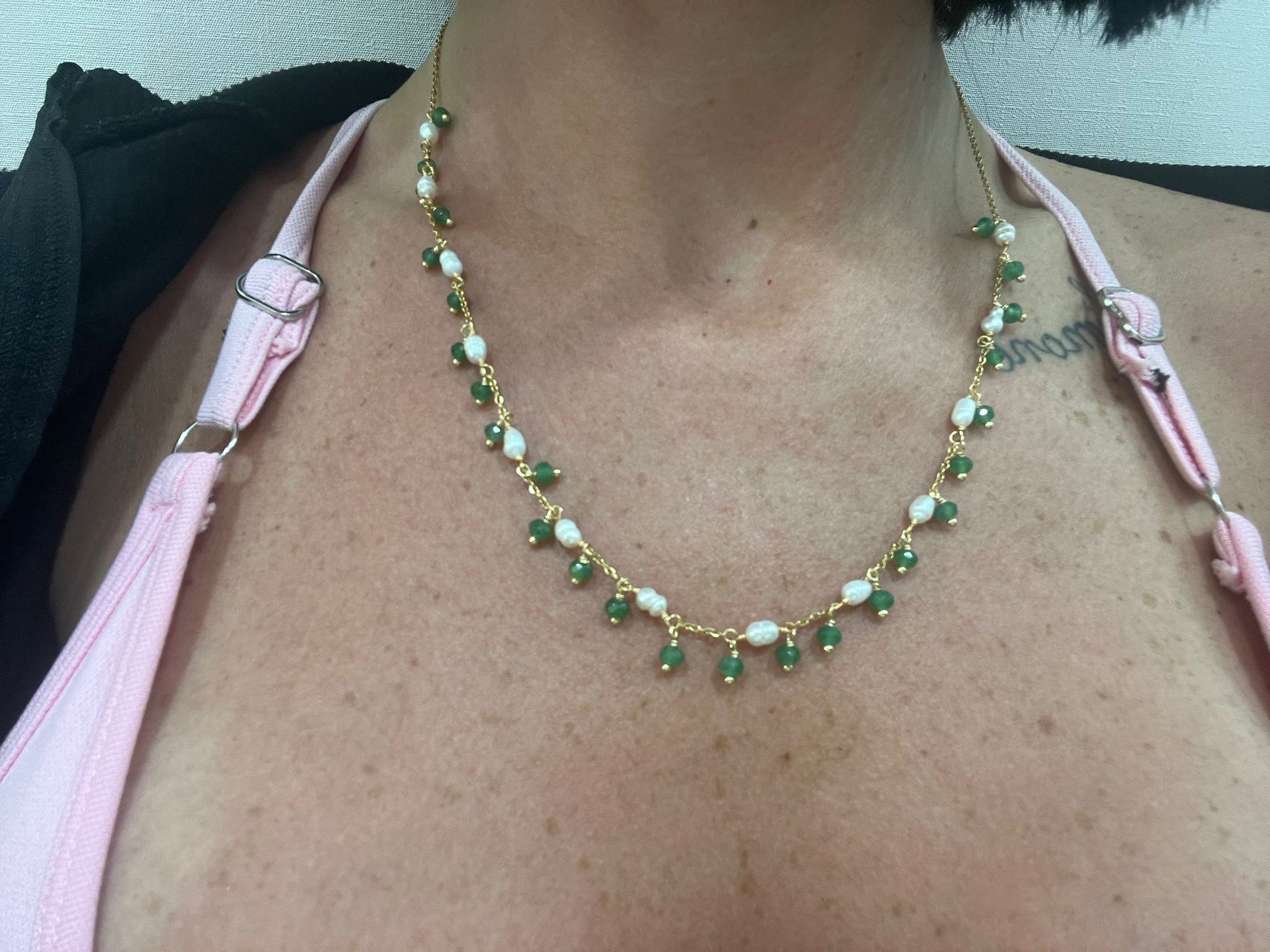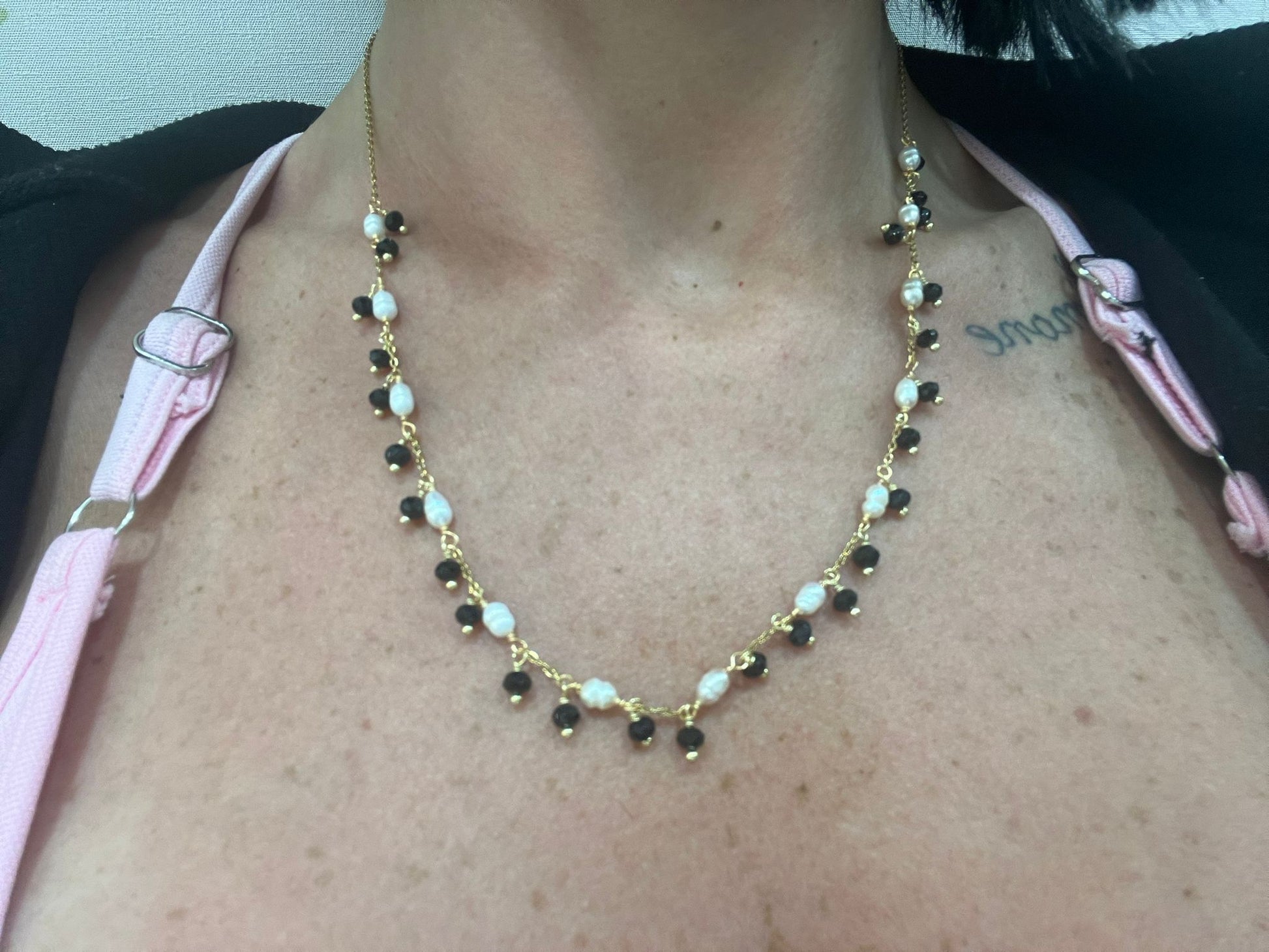COLLANA IN ACCIAIO GALVANIZZATO IN ORO E PIETRE NATURALI