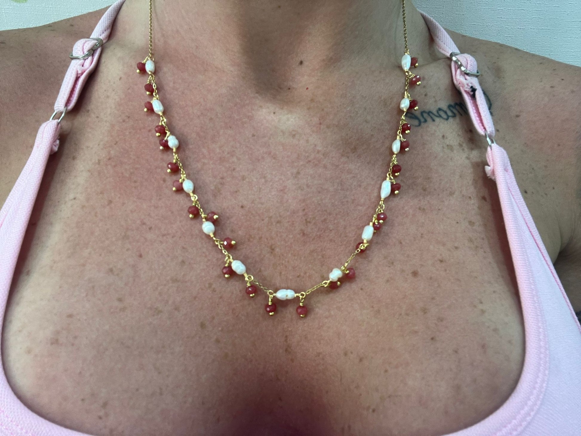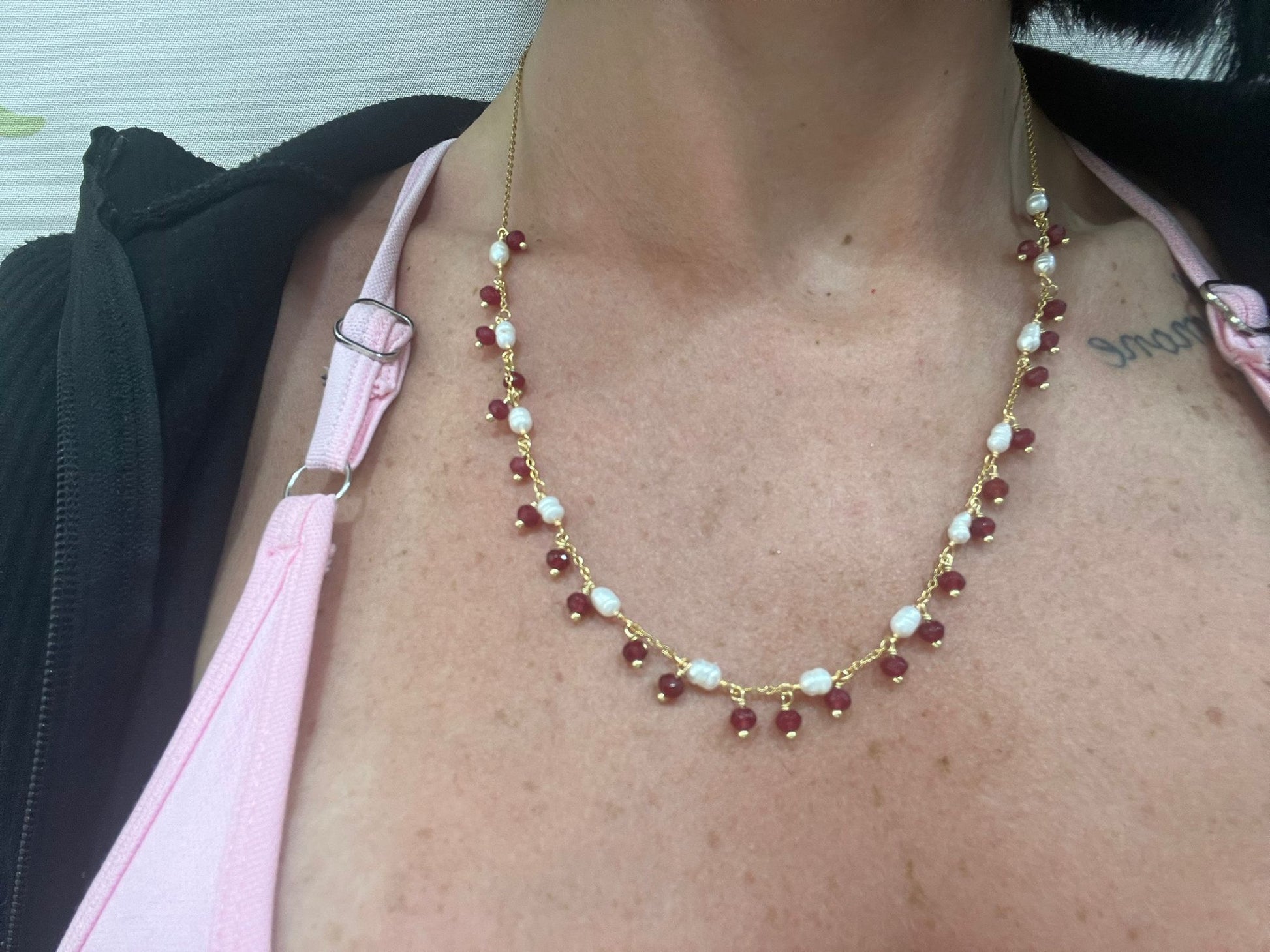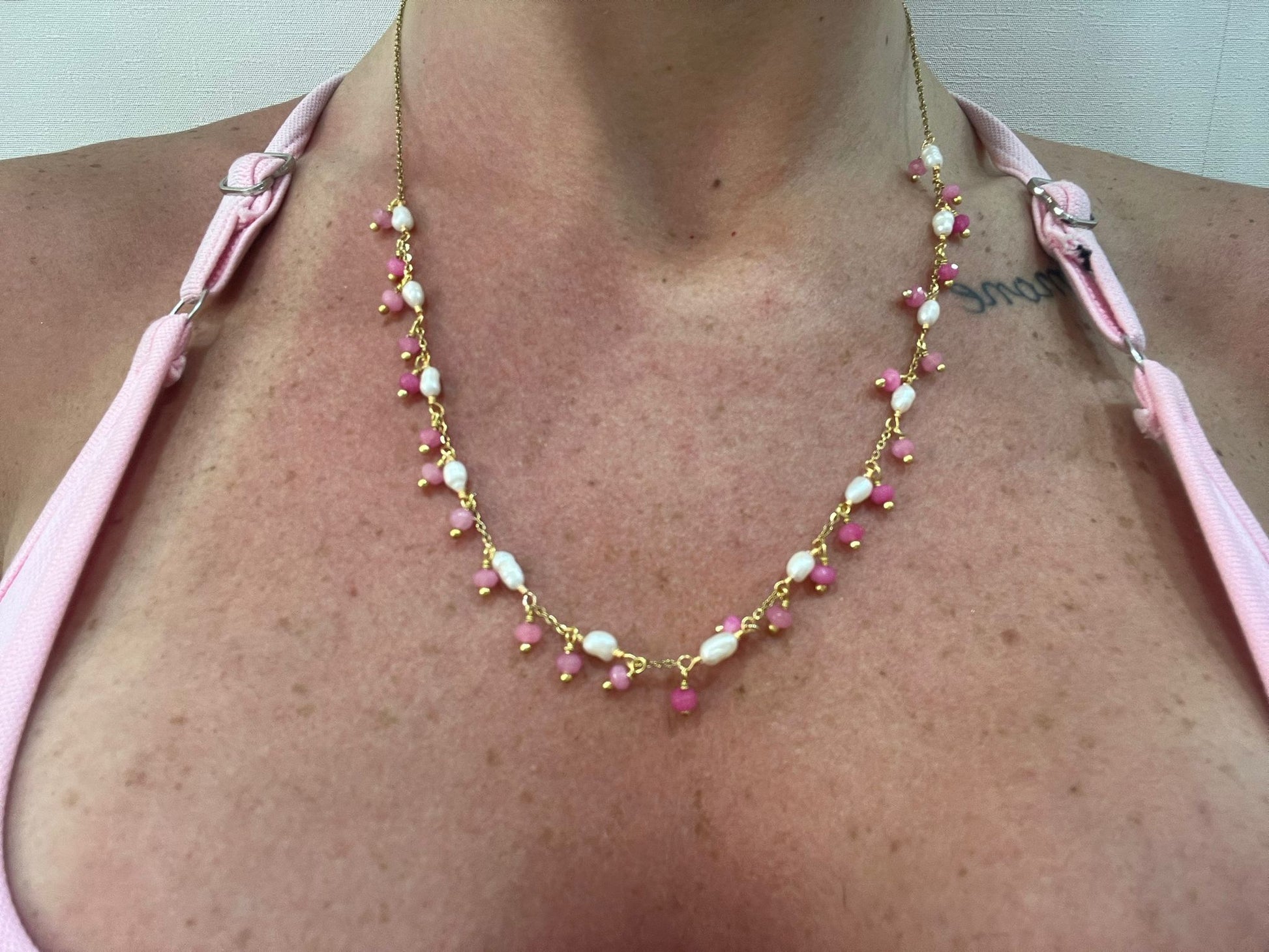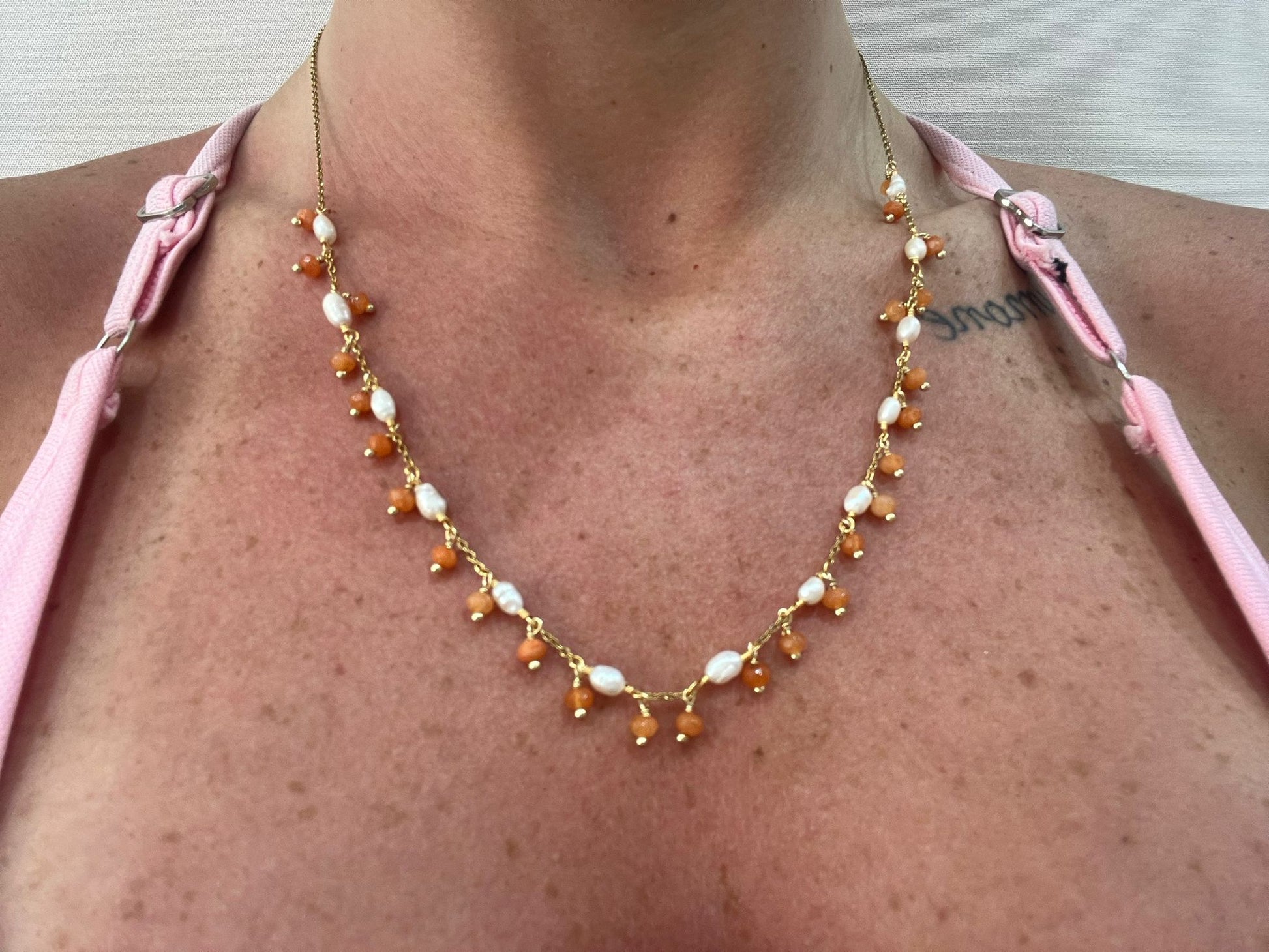 COLLANA IN ACCIAIO GALVANIZZATO IN ORO E PIETRE NATURALI