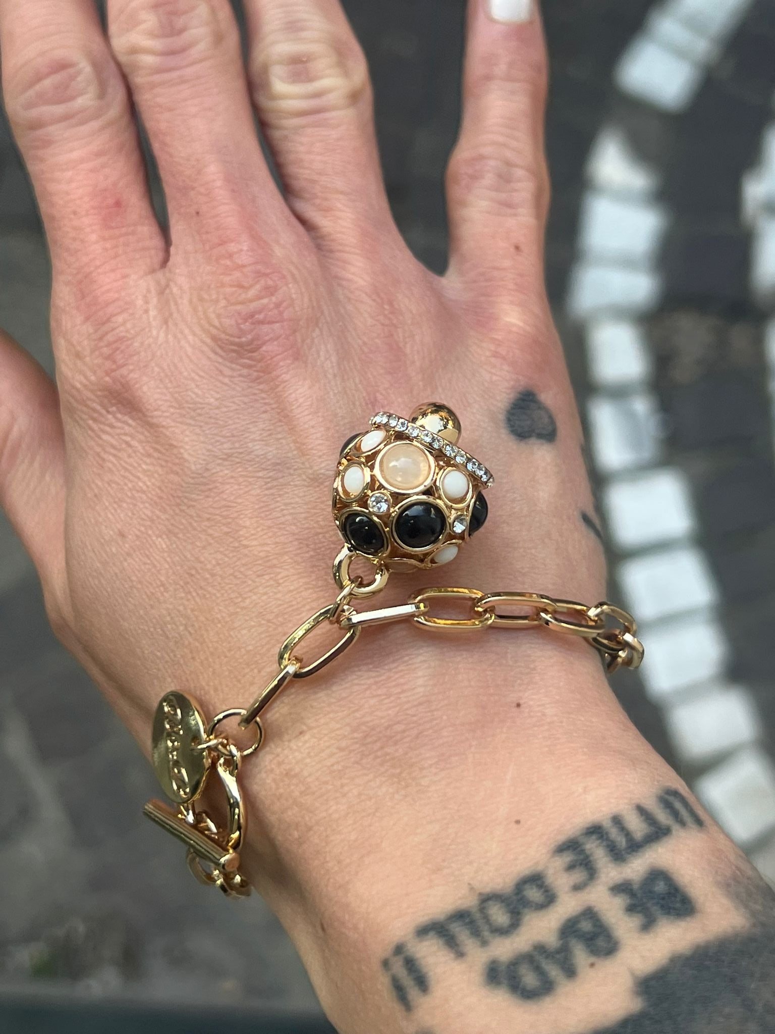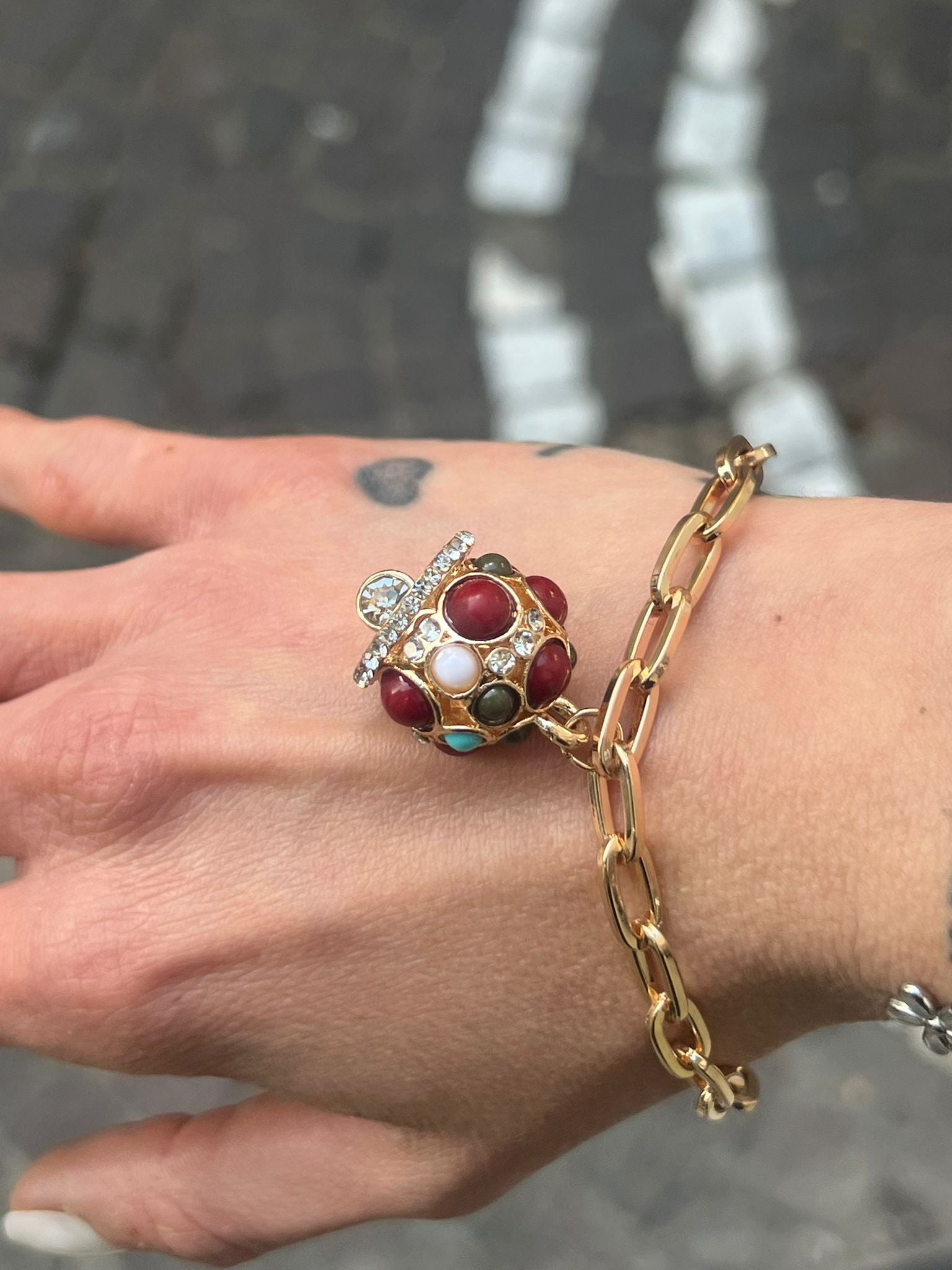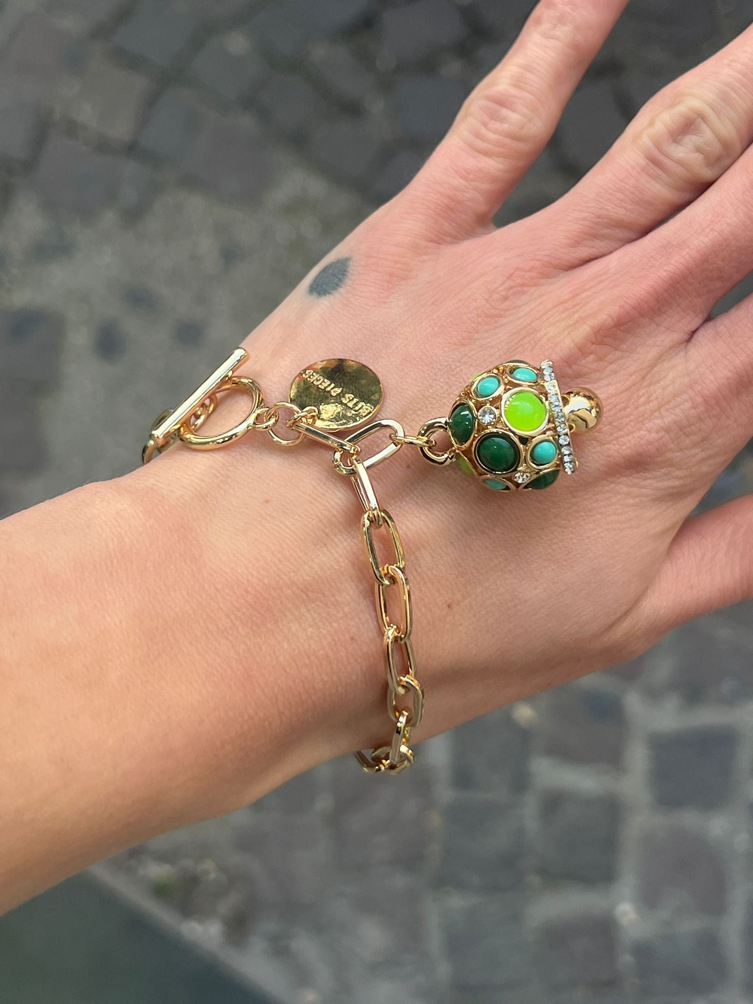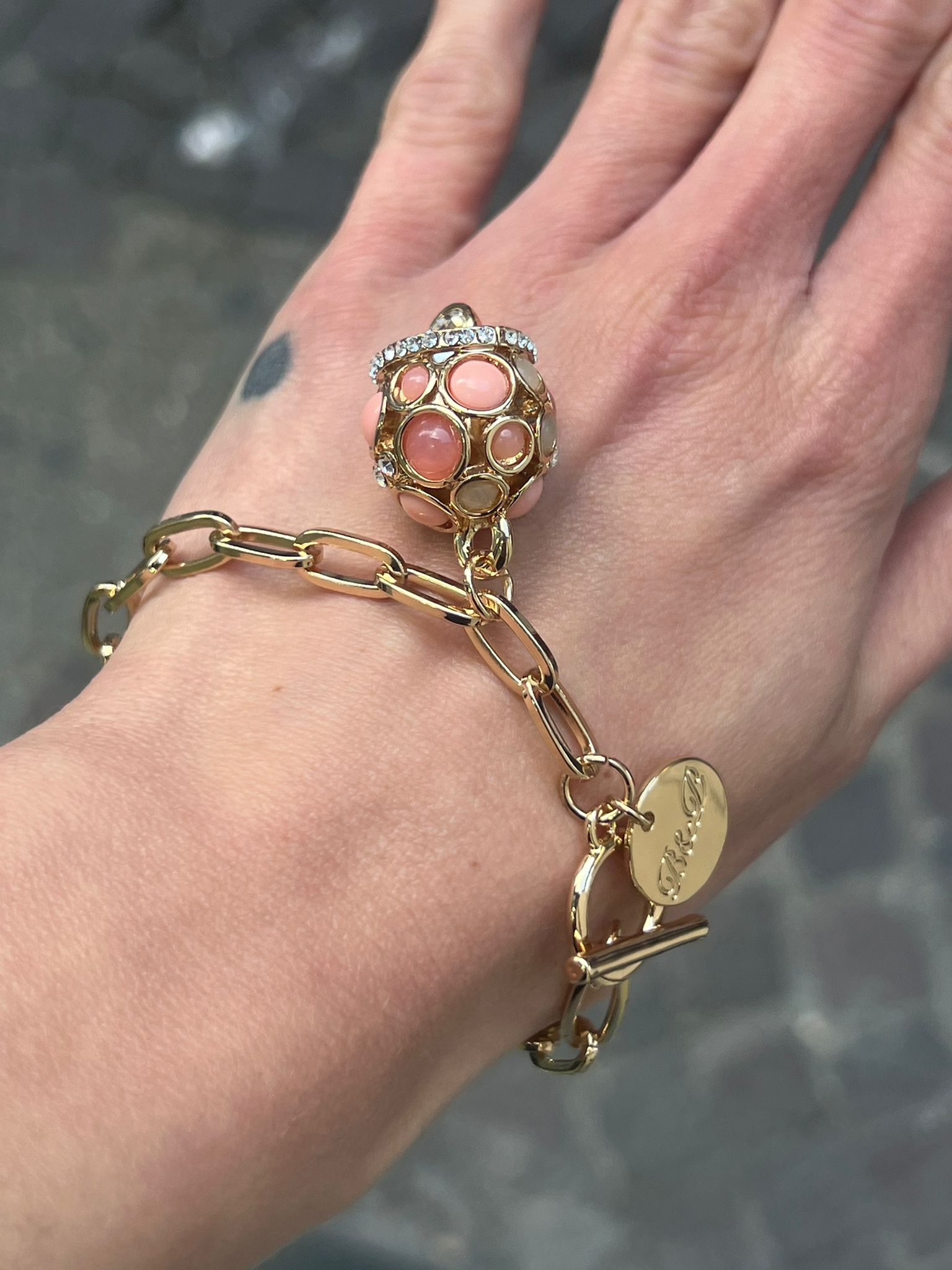 BRACCIALE IN ACCIAO GALVANIZZATO IN ORO CON CAMPANELLA PENDENTE